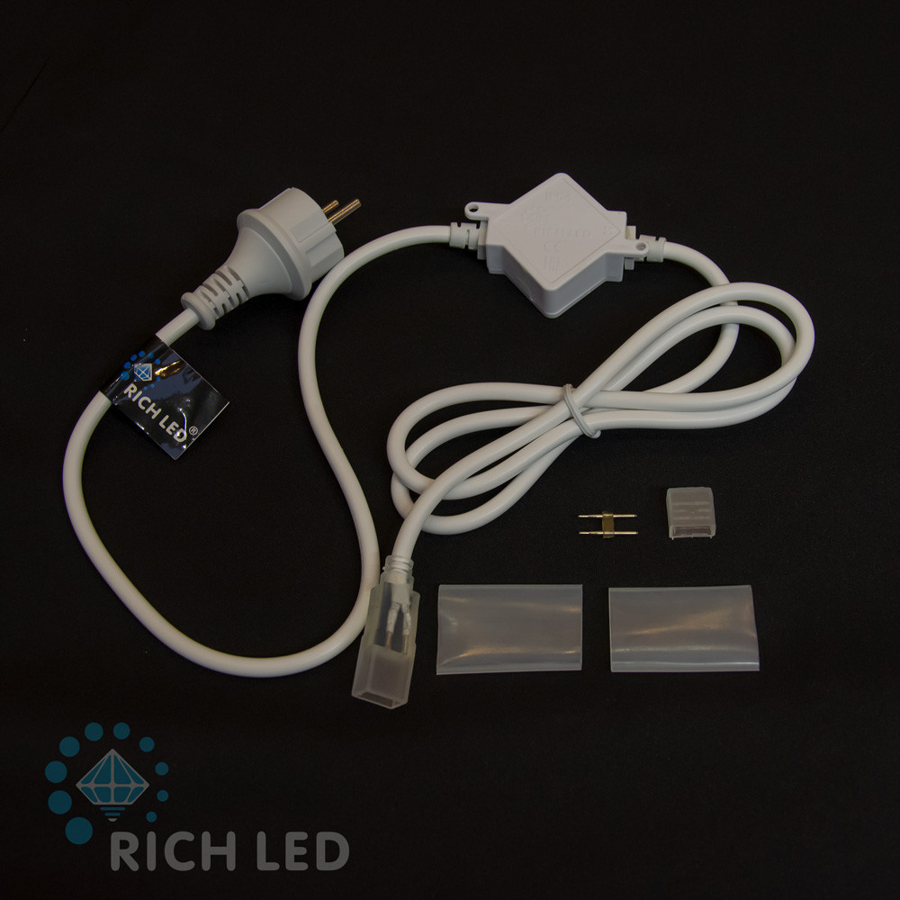 Описание Комплект подключения для двухстороннего неона (RL-FX816D-120-220V), до 50 метров, белый провод RICH LED RL-220AC/DC-1.5-4A-FX816D-W