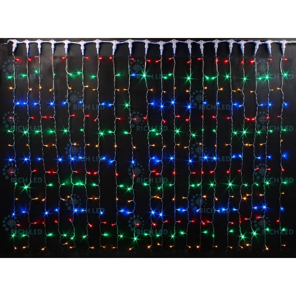 Светодиодный занавес (дождь) 2*3 м, мультицвет, прозрачный провод Rich LED RL-C2*3-T/M