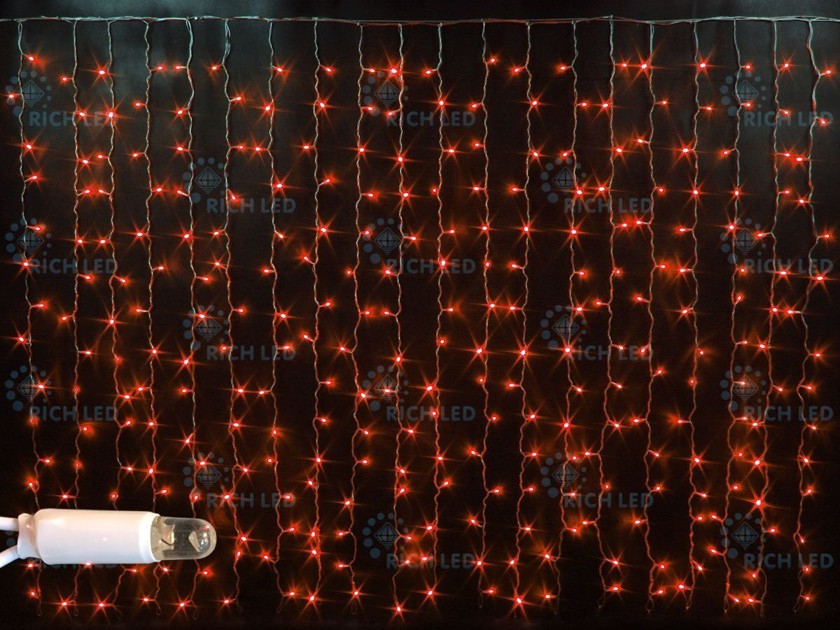 Отзывы о Светодиодный занавес (дождь) 2*3 м, красный, мерцающий, прозрачный провод Rich LED RL-C2*3F-T/R