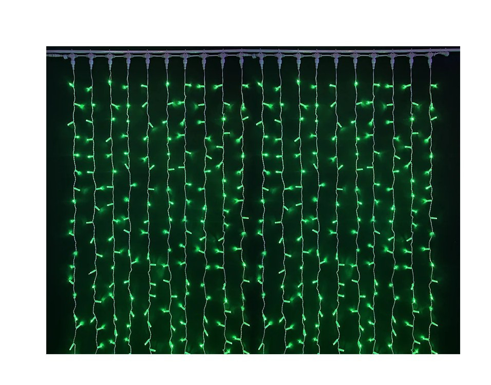 Светодиодный занавес (дождь) 2*1.5 м облегченный, зеленый, прозрачный провод Rich LED RL-CS2*1.5-T/G