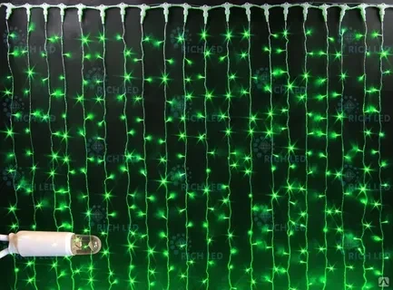 Описание Светодиодная бахрома, 3*0.9 м, влагозащитный колпачок, мерцающая, зеленая, белый провод Rich LED RL-i3*0.9F-CW/G